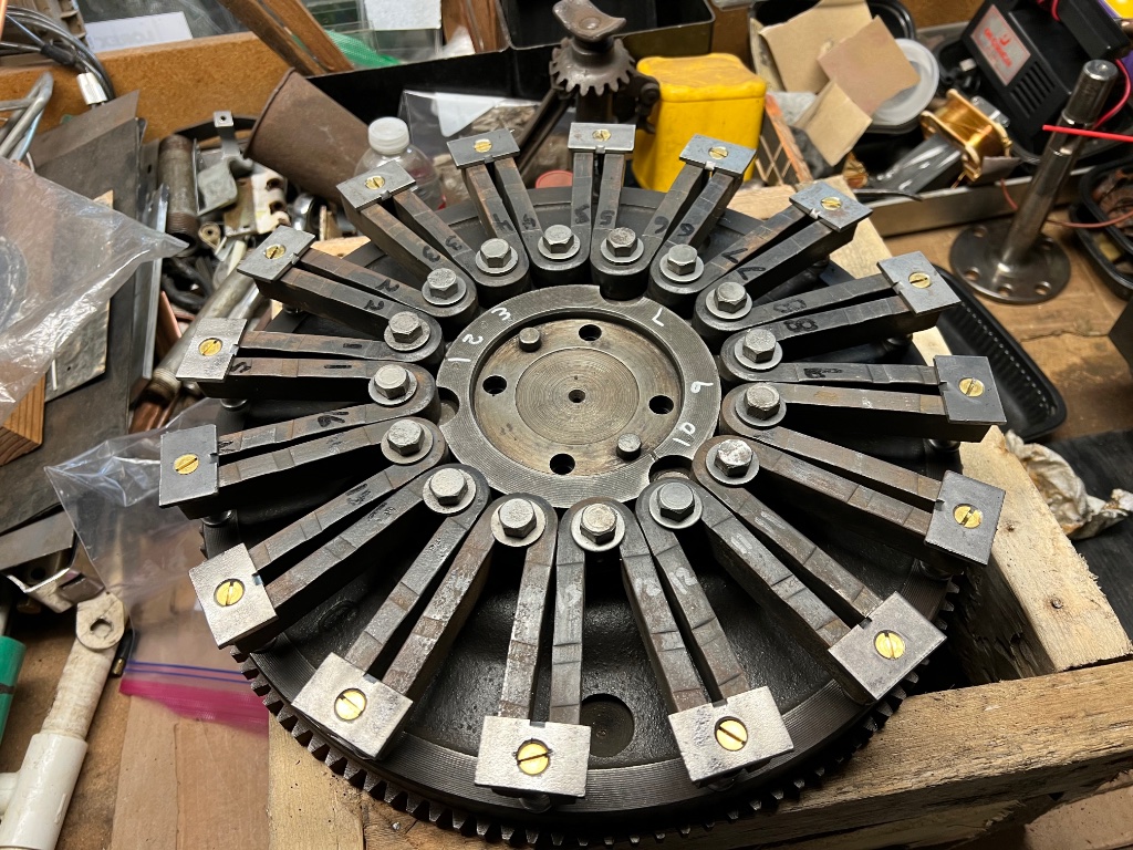 I continued my months long quest to rebuild/assemble my August 1920 motor. I rebuilt a mag coil ring I bought off of eBay, recharged my magnets using a single 12 volt battery (they can lift a transmission gear shaft which weighs 2lb 9 oz according to my wife’s food scale), and started setting the gap between the two pieces. It took me a few hours to find the brass shims that I put away someplace safe.