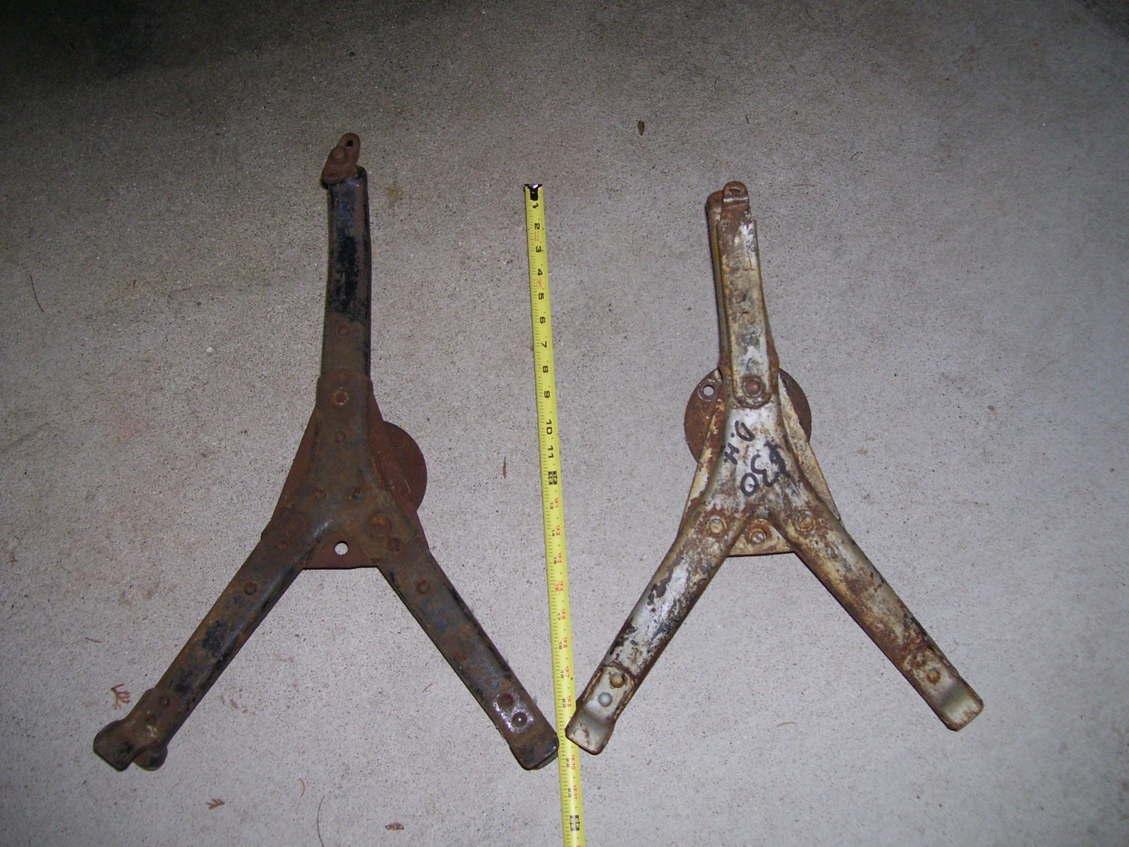 Measured my 21" wood wheel spare Y carrier for you. Dimension from the highest point on one of the Ys, to the center of the stud on the lower arm, is just about 19.5". fits 26-27 coupe and roadster.
