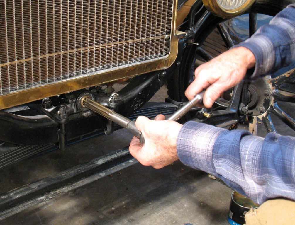 On two of my cars that I have replaced the crank bushing, the OD of the new steel bushings must have been slightly undersized. I had found that the bushing would over time move forward to the point that the starting crank ratchet would not engage, then I'd have to use a drift and tap it back into place. Both times I ended up taking the new bushing back out, giving it a Dutch knurl using a center punch, and putting it back together with some JB weld. So far they are holding up ok.