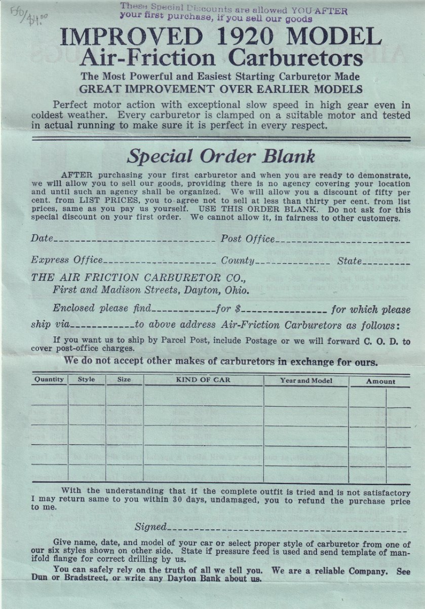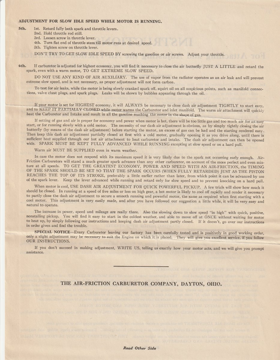 Re: Air Friction carburetor instructions and other literature