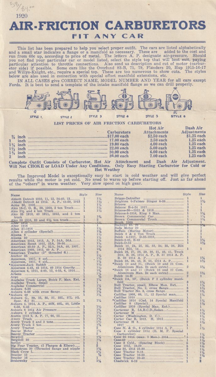I just acquired several air friction carburetor pieces of literature. Here are some scans of them ..