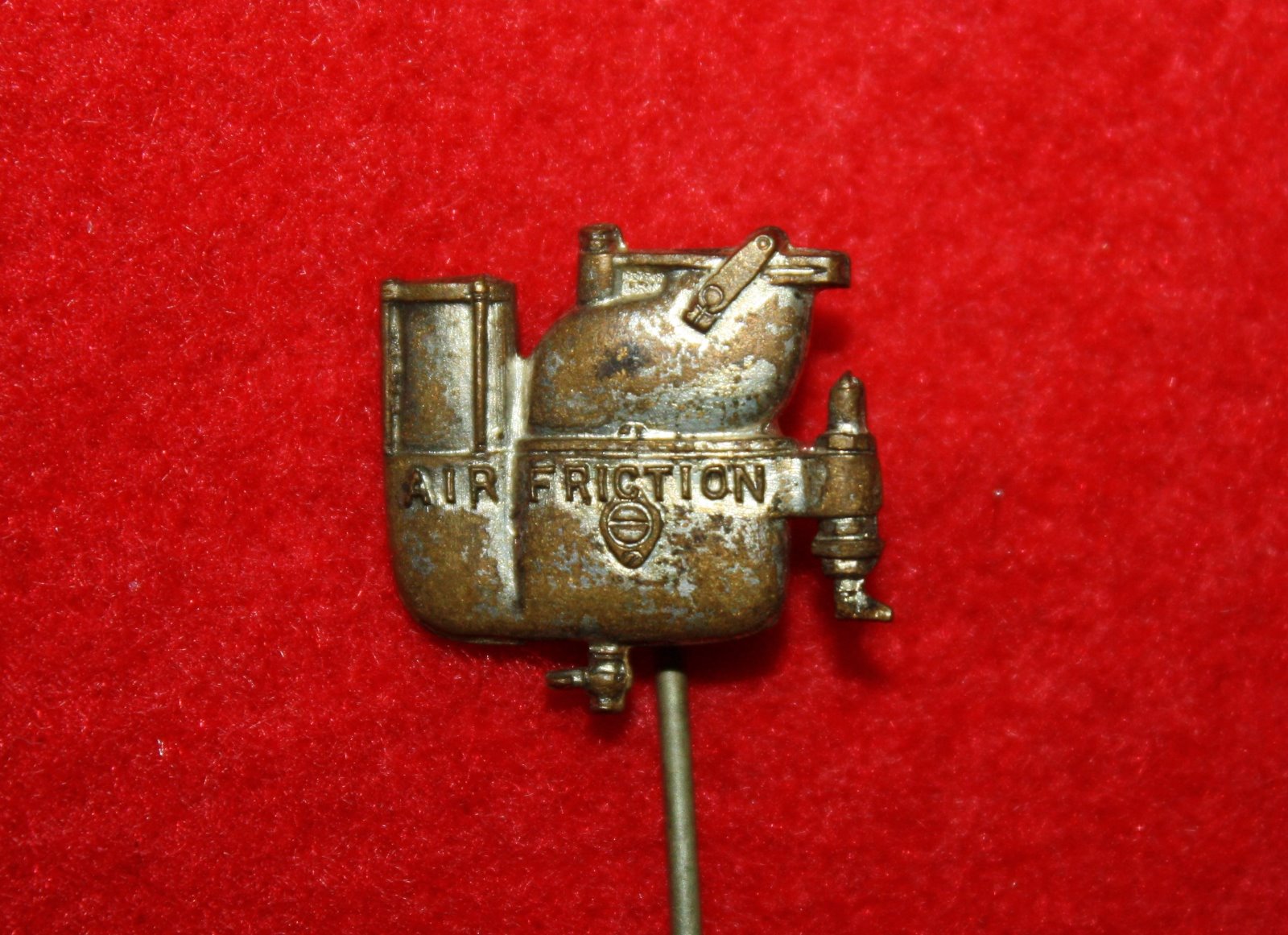 Air Friction carbs are fairly common, but other than ads, I have seen very little info or items pertaining to the carbs. A few years ago I did find a watch fob, and a hat/lapel pin. Im not sure if I ever posted a photo of the watch fob and pin. So Ill post them here, just in case .....