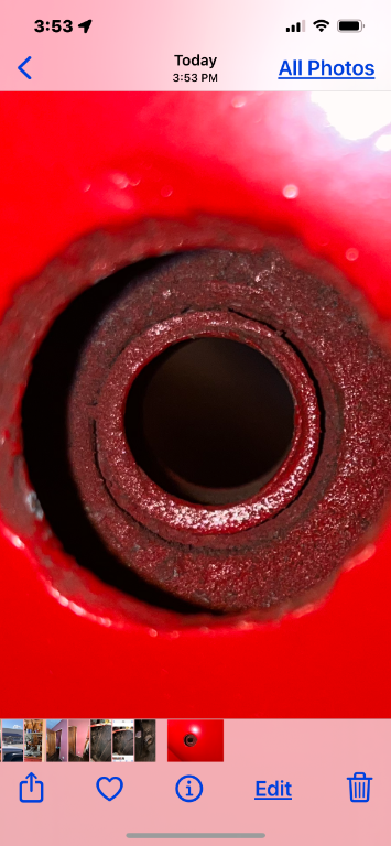 That's odd. Could it have a threaded bushing in it? Threads stripped? Better check with Ken. It's definitely different from mine, and different from what the repro parts are meant for.