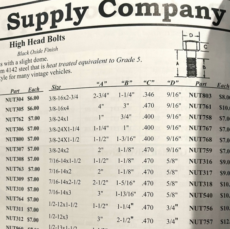 Can someone please tell me what the correct bolt is for mounting the buggy rail and saddle arms on a 1910 T? I know they are fat headed, like this driver, but I’m not sure of the length, diameter or even where to buy them as well as the nuts. Any help would be greatly appreciated!