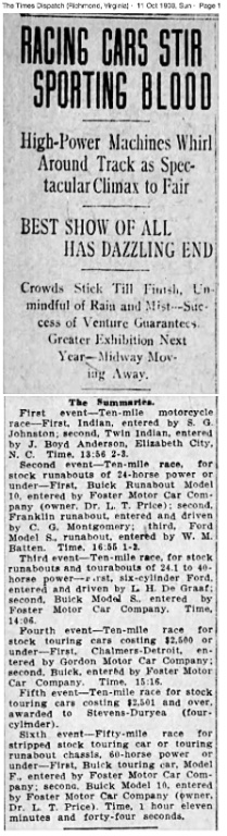 Found a local article regarding the 1908 State Fair races.
