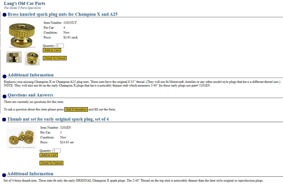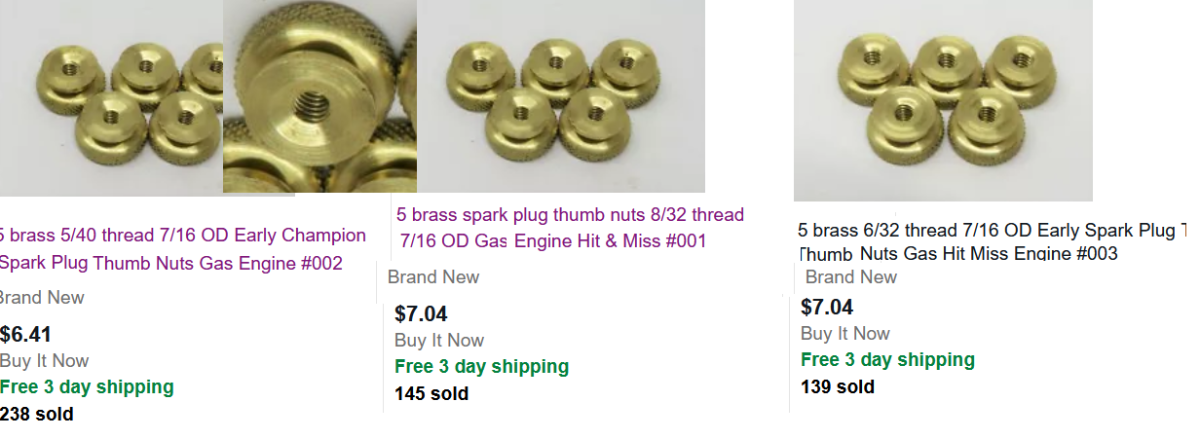 Not sure what you found on AMAZON but not all knurled nuts are alike. Lang's is selling original style nuts for those seeking originality. --Steve Jelf wrote: ↑Wed Jun 15, 2022 11:21 pmMein gott! $6.24 a nut! I believe in supporting our parts dealers, but I'll spend the money on things I can't get elsewhere, especially when elsewhere is a fraction of the price (71¢ on Amazon). I love Lang's, but not for plug nuts.![]()