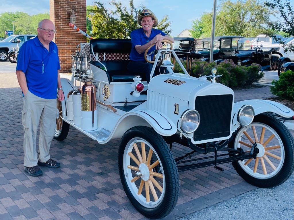 The photo of the white fire truck at the front entrance shows Tod Wirth with his beautiful 1917 Model T Ford American La France, and Keith Gumbinger standing along side. Keith is the man in charge of this tour, the Tour Chairman,and also is the treasurer of the MTFCA