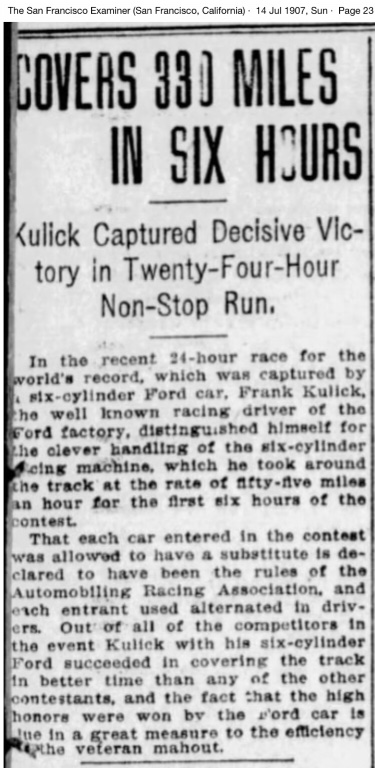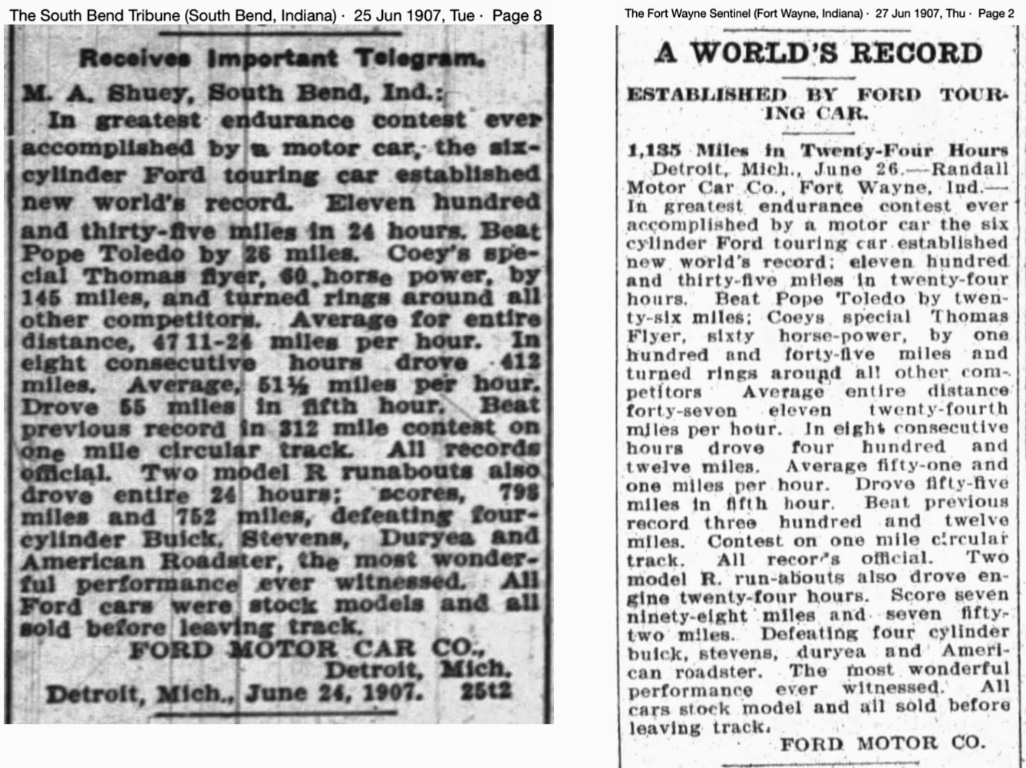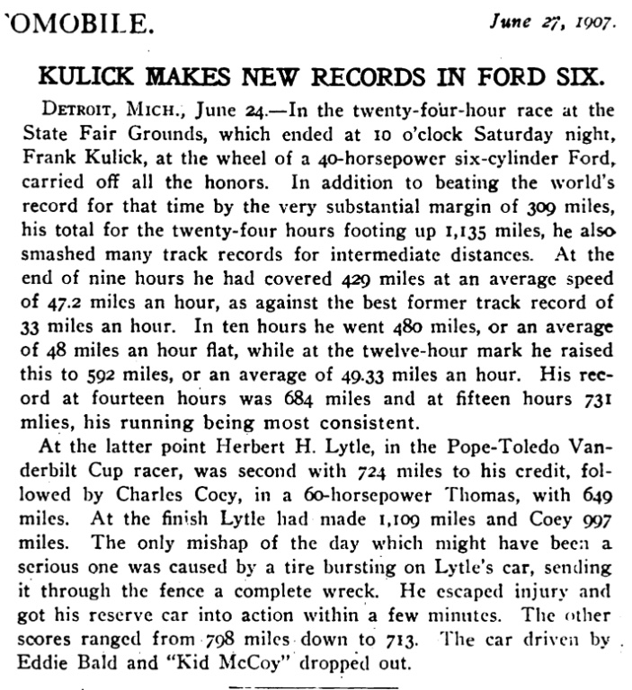 Re: 115 years ago today, Ford Motor Company set their first stock automobile world record.