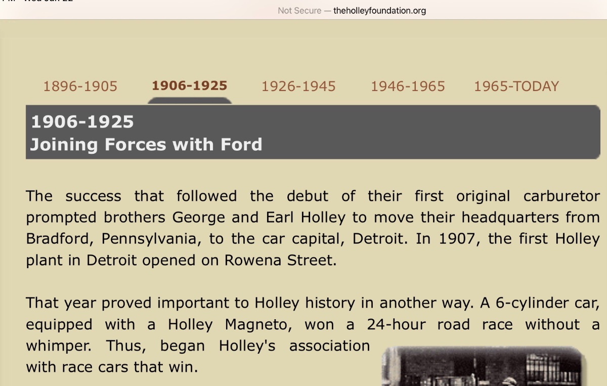 Holley Magneto advertising promoted the unique magneto created by Ed Huff, patented to Henry Ford. The magneto was actually the worlds first CDI (capacitive discharge ignition) system used on a production automobile.