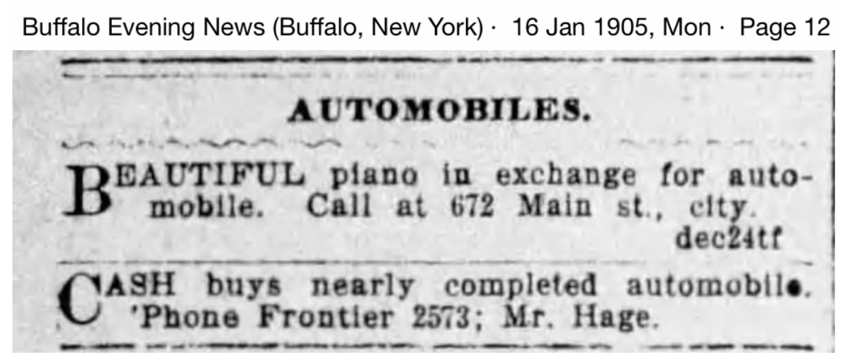 The owner offers to "take a trial spin" (who would have thought going for a "spin" was already part of the automobile lexicon?). Additionally, the owner writes "Please don't write about your real estate or pianos, as I don't wish either." I thought, who would offer a piano in exchange for a car, even in 1905?