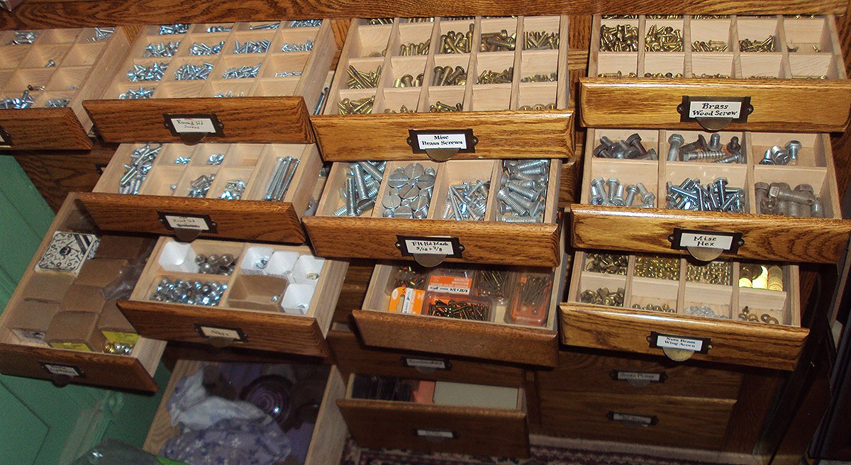 I'm sure I have saved as much time looking for bolts as it took to build the 50 or 60 drawers to put them in. I have saved a hundred trips to the hardware store to buy a little screw in a package for $3. Besides I like to work with wood. If I use 1% of the bolts I have sorted out it will have been worth while. All we can do is try.