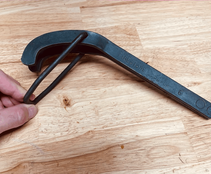 Since Firestone made all sorts of tire apparatus, could be a special design like the forked tool on this 1913 catalog page.