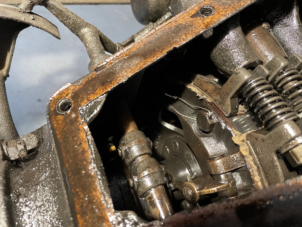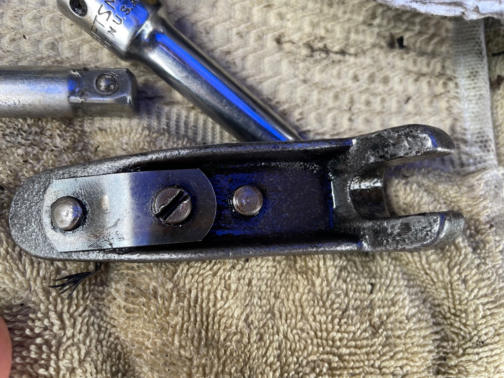 I did ask about the clutch cam setup (the guy who was familiar with the unusual bands), and he said his was set up the same way. It may not be obvious in the above photo, but there is a lead-in ramp on the end of the bolt. He did say that the linkage clevis and pin were worn excessively, and should be replaced before long. He adjusted the linkage a bit, and it does shift a bit smoother now.