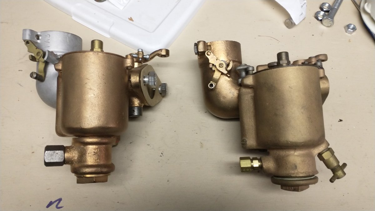 I have 2 WS carbs and I am thinking of putting one on my speedster. The one on the left was sold to me by Uncle Stan. I do not remember who sold me the one on the right. I have switched the air intakes, but they are basically the same. I found an article that states I should open the idle adjustment about 1 1/4 turns and the high speed 4-5 turns.
