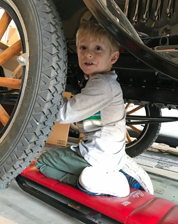 My daughter is four, doesn’t like car shows. But she likes being in the garage with me!