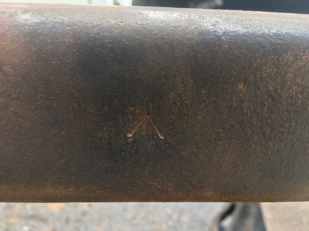 here’s another hieroglyphic. Passenger side frame rail about the area of the carburetor. Possible assembly line guide?