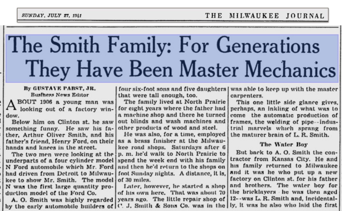 Yes, A.O. Smith supplied some frames, but I'm not sure regarding Model B. Below is a 1941 newspaper article including a photo of A. O. Smith Henry Ford in a 1907/08 Model K. By 1941, the press has it wrong, writing the Model K was not a "financial success," when independent audits show the car was remarkably profitable, even leading sales and keeping Ford "in the black" in 1906. The article also mis-labels the car a 1906. The article is quite long. To see the entire piece click on the link below: