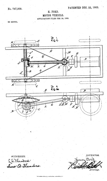 Mr. Ford’s patent for the rear axle is U.S. Patent number 747,909, granted on December 22, 1903.