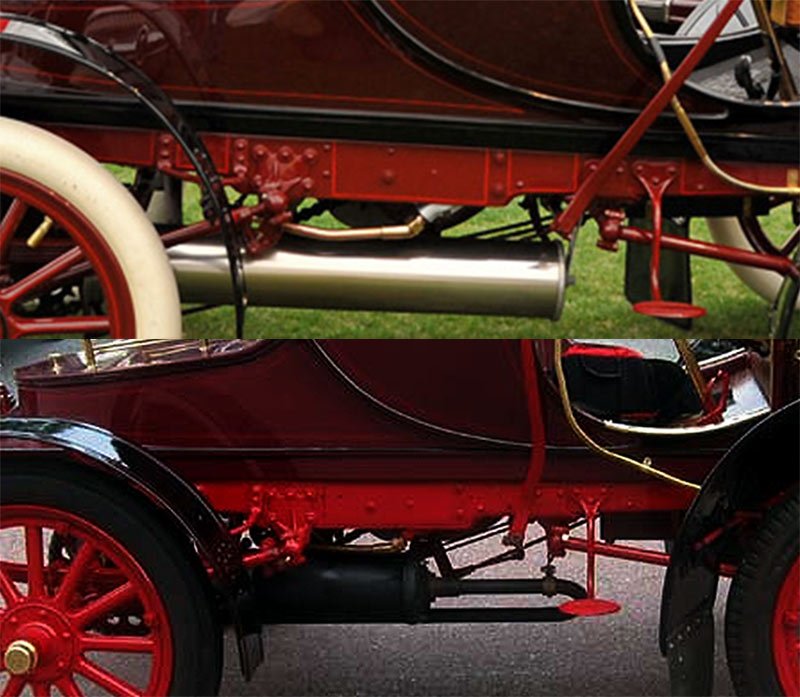 I would agree with Rich. The prop has similarities to the 1 cylinder Cadillacs from 1904 to 1908. The step plate, muffler, the change in frame height and the radius rod mounting are all too similar to be anything else. I don't recognize the body style. Tulip Bodies were prevalent at that time.
