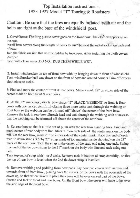 Here are some older install instructions, got these from the long gone "Carter's Cut and Cover Shop" that made nice T kits. Perhaps these can help with your fun :D Happy tacking!