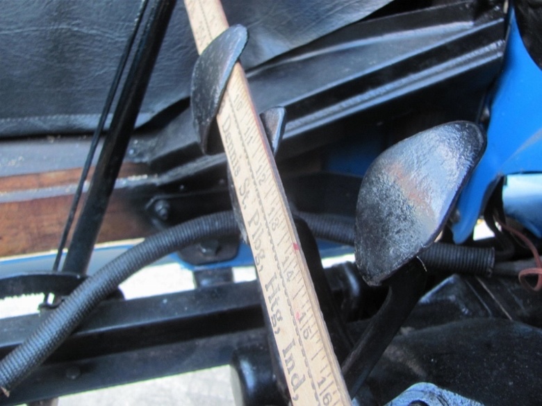 Now start the Ford, and check free neutral with the low pedal, should be a good range established. While started, note if the T wants to really creep forward, with the clutch handle straight up, or with your foot holding low pedal in 'free neutral'. If the creep is excessive, turn the Adj. Bolt on the clutch lever to minimize creep. Normal to have some minimal creep, that is the reason the clutch handle also controls the rear brakes, but on level ground, with engine running and in 'free neutral', there shouldn't be much at all with a warm motor.