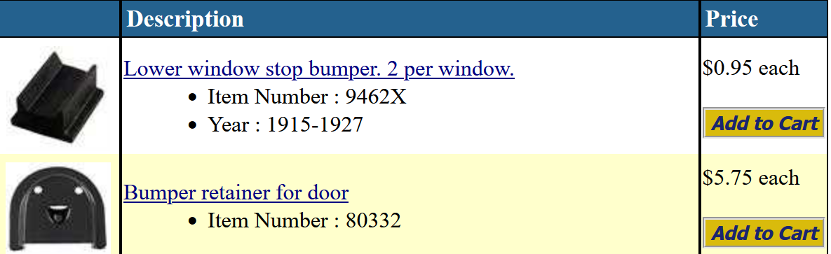 The original 95 year old rubber bumpers on your T are as hard as rock, so will not provide a cushion for the glass or cushion of noise absorption for the trunk lid, so will need to be changed. I could not find a window cushion at Lang’s but they have solid rubber bumpers that can be cut to size. I have also included the trunk bumper available at Lang’s. The old one will have to be chiseled off and the new one put in its’ place. Jim Patrick