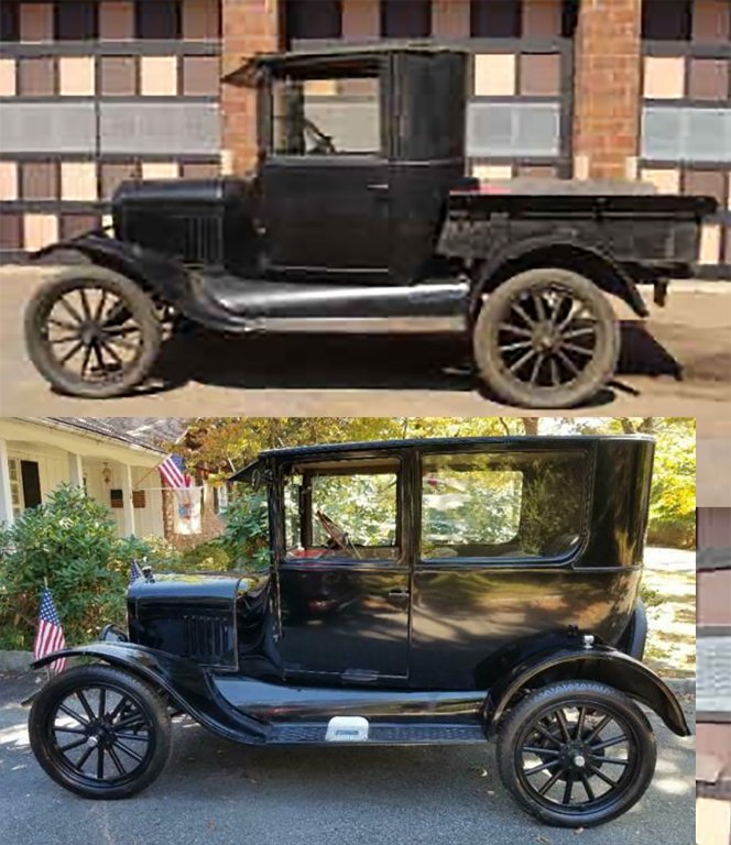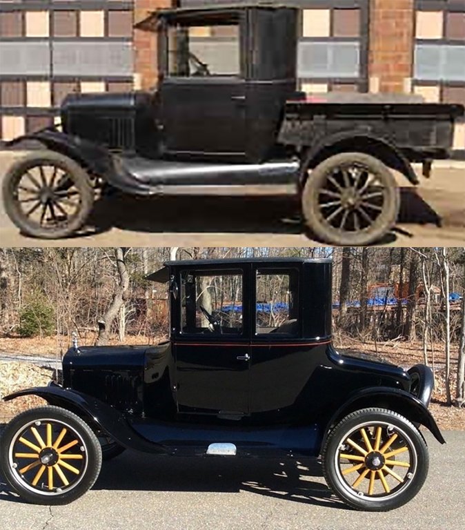 I believe this shows that it was a 1924-25 Tudor. The door proportions, visor, cowl and splash apron look exact to me. The rear upper body panel does look different but I don't believe it is Coupe or Fordor. Maybe custom or extended. There is a vent in the cowl although not clearly seen. Coupe and Fordor doors were not that wide.