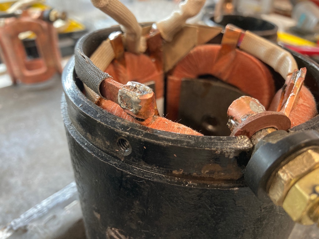 When you next find this a struggle just think of us here, many miles from the source of all good things T, where we have to strip the coil covers, unwind the copper strip, clean it, anneal it, re-shellac it, rewind over a special form and re-cover in nomex before we can even think of doing anything else...