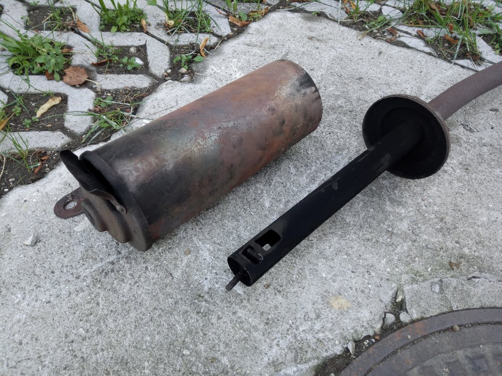 Yes, a lot can happen in almost 100 years. Allan must have misunderstood my question. I'm wondering if that's a US muffler with a deflector added? Was there an end cover with an opening at the bottom? From what I've seen so far, these were slightly on the side.Then the deflector could not have been added just at the bottom either.