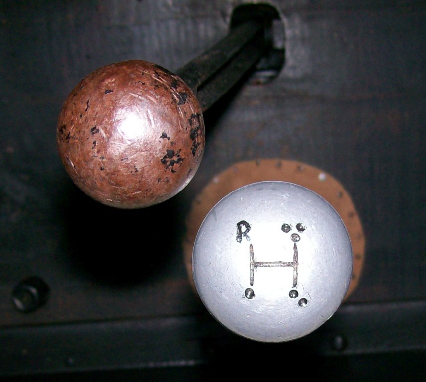 One of the pictures is of the gear shift knob I cut the gear shift pattern with a Dremel tool. Instead of numbers I drilled one hole for first, two holes for second, and three holes for third, that way I can feel the shift knob and know where the gears are without looking. Sort of reverse brail.