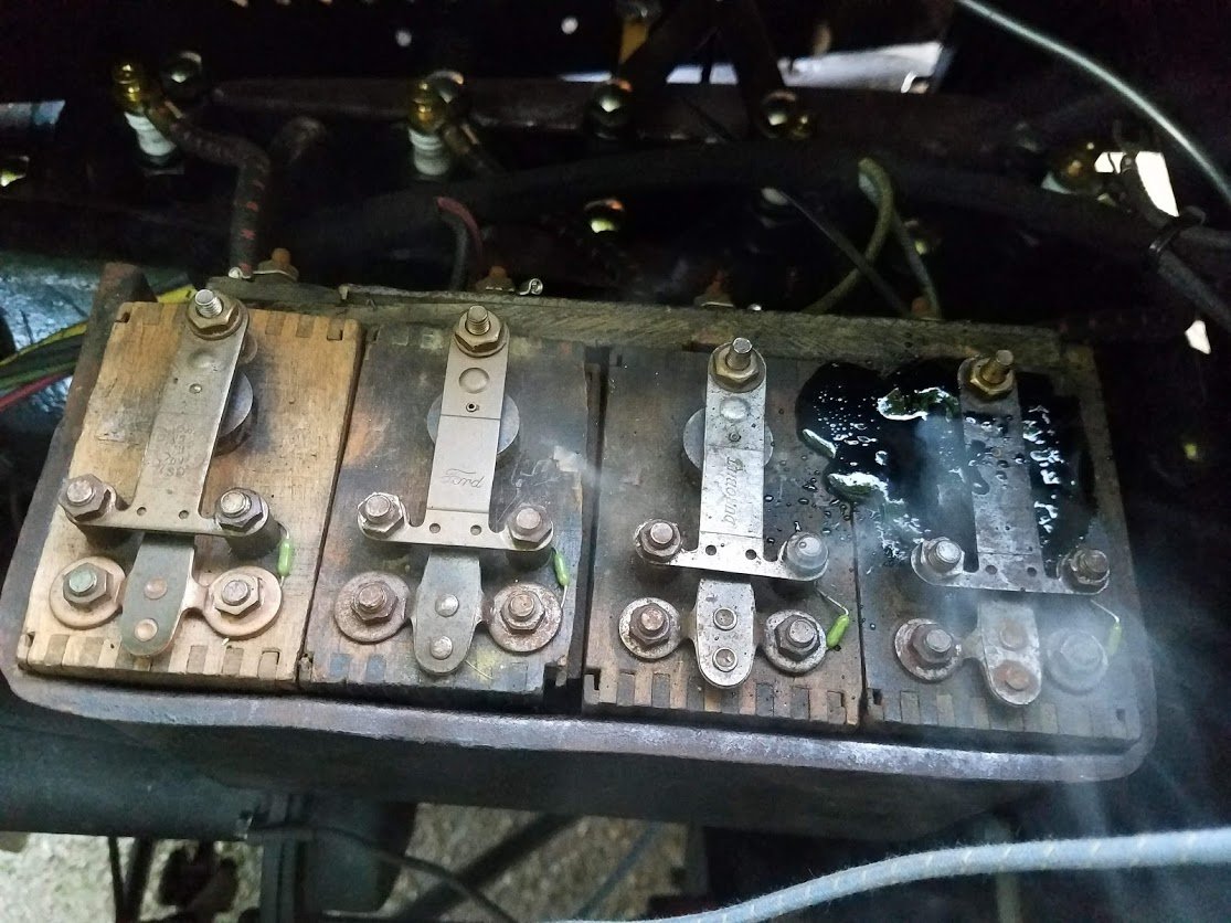I’ve worked on lots of T’s and occasionally see this dark, somewhat oily substance “leaking”. The stuff that generally leaks out is not really tar, but somewhat oily. It can happen on original coils or rebuilt coils. It seems that the original tar maybe degrades over time and there is sometimes a sort of separating of the “tar” component parts and a slightly more liquid product that tends to leak out the bottom of the coil. Some coils seem to have tar that is a bit more stable, some coils maybe don’t leak because the finger joints at the bottom of the boxes are absolutely tight. If you have rebuilt a ton of coils, you have seen the internal tar in many different conditions; rock hard but fractures, stiff & rubbery, sticky & rubbery, crumbly, crumbly & slightly oily. I would like to think that the potting compound used in the Ford script coils all started out about the same and different climate, temp, humidity, storage conditions, usage, exposure to various substances, etc over their life has changed the potting compound and caused it to break down in some coils. After ‘18 or so the tar had a higher melting point. ‘18 or earlier coils can leak/separate if used on Fordsons or mounted on engine like ‘26-‘27’s.