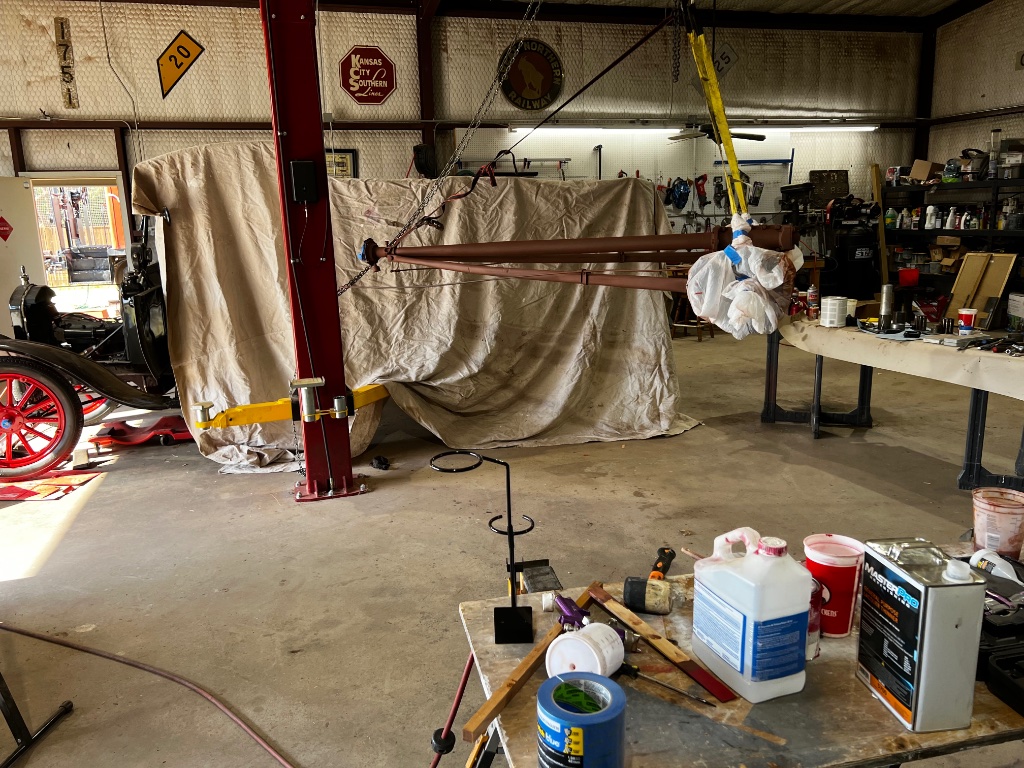 Getting my 1912 MIL roadster ready for paint. Equipped with a dummy firewall and "rollers" for wheels. Hoping to br ready for a top come May. Best running T I've owned.