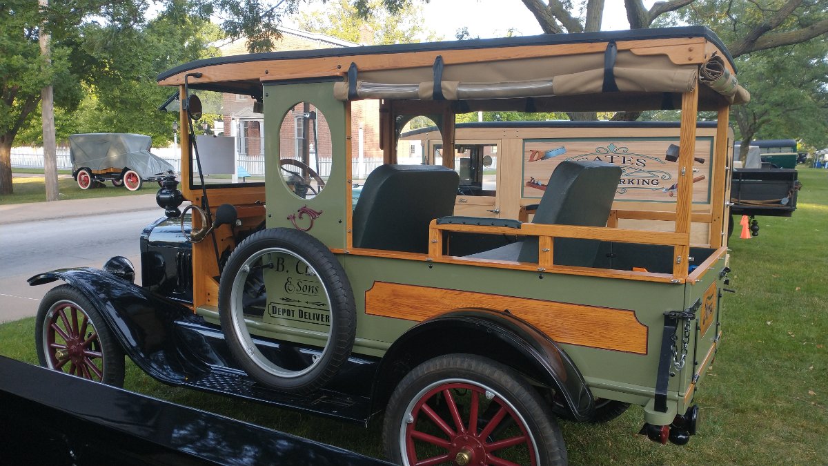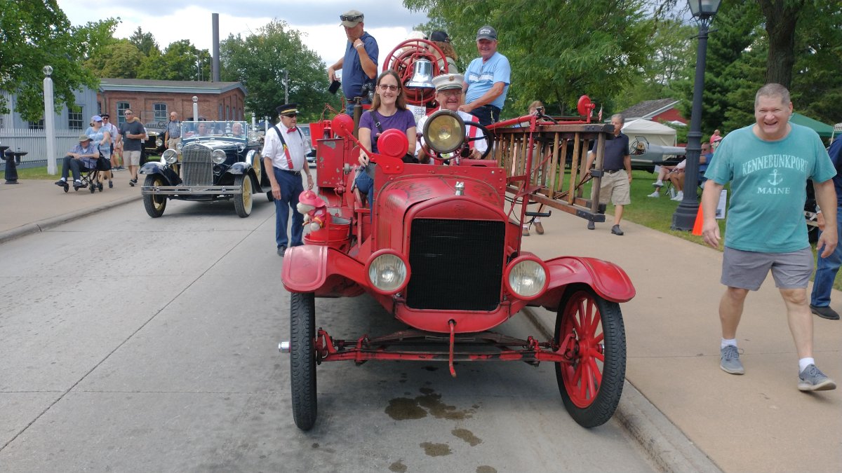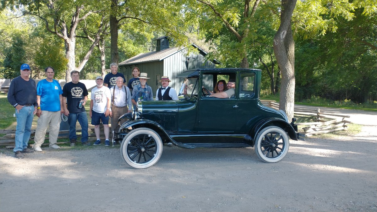 Today was a work day here in Dearborn. Time to polish and clean up Rob's cars. We all went to lunch at a Mediterranean restaurant for lunch and then headed to the Piquette Museum. We had a little show with 7 beautiful cars. Steve Jelf showed up, too. Kim Dobbins rode with me to Piquette in the T and back again. I think today will be a picture day. Today was registration and walking around Greenfield Village. Met a few people I haven't seen in a year or more including Tammy and Scott. Enjoy.
