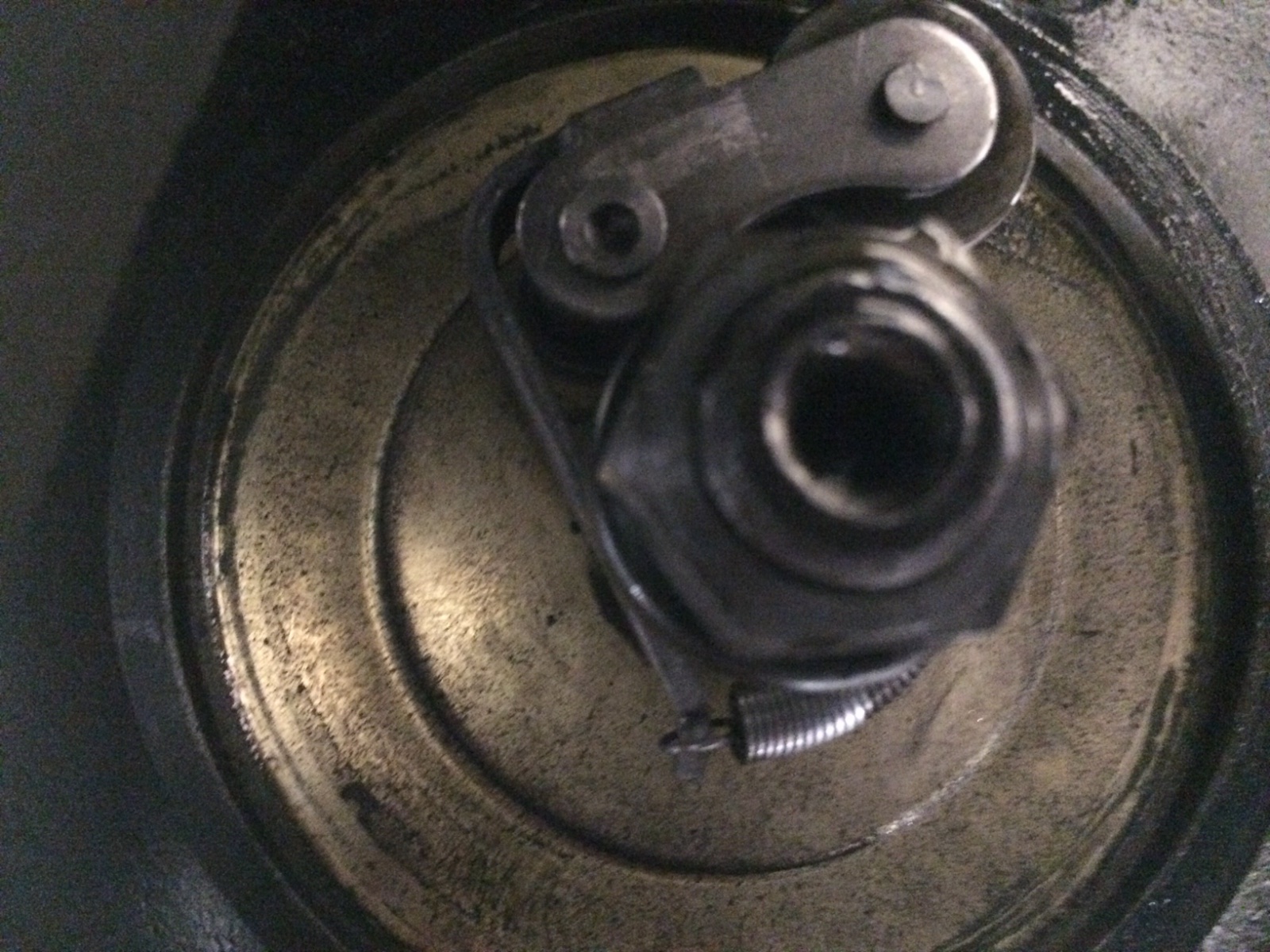 It is nice to see the original metal seal shield in place. Behind it is the felt seal that keeps most engine oil out of the timer. When you think you need to, all you need to do is remove the roller assembly, lift out the brass shield and replace the felt...reassemble. Don't lose that shield. The repros are mysteriously the wrong dimension and cause no end of trouble.
