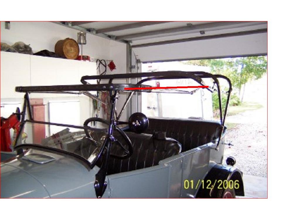The picture you pulled up of a later blue touring has the earlier 23-25 top bows. I have 23 tourings, but no 26-7. I do have a friend with one. The mechanism has more pivoting bars & is more "1 man" than the 23-25 tops. 26-7 pivot bows have a curve to them on both roadster & touring.