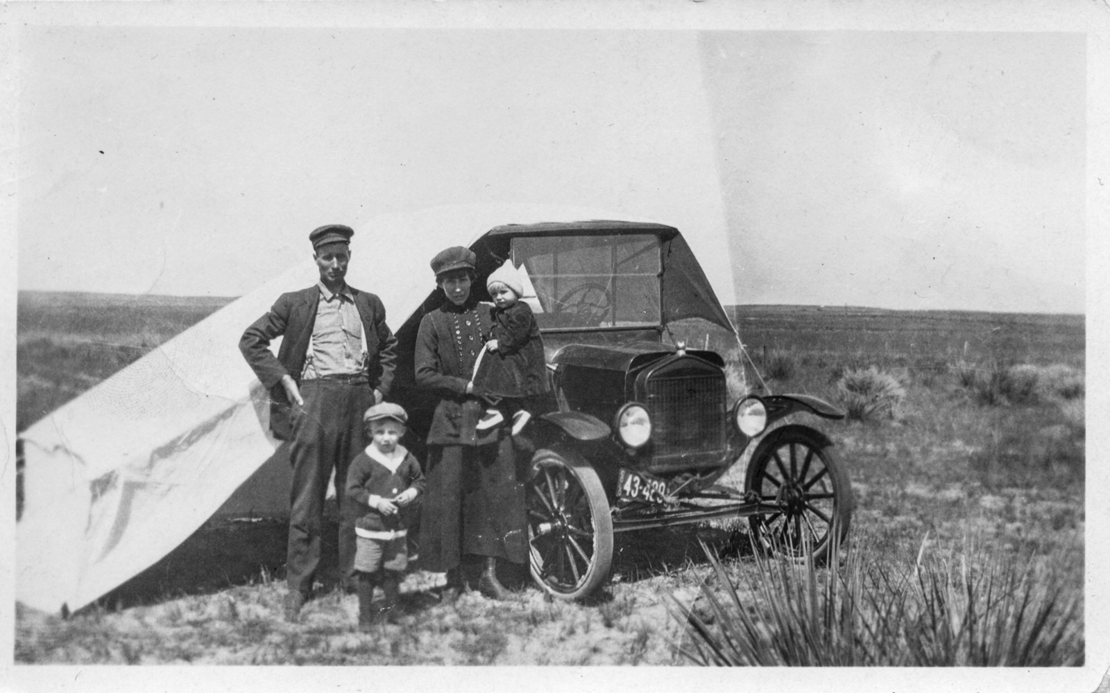 A friend of mine sent me this great image of his family camping with a T and an “Auto tent.”