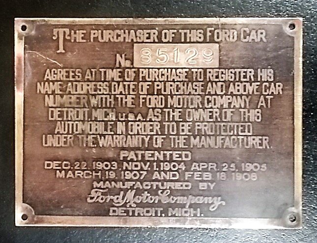 Recently I was able to procure a dash board patent plate tag for my Oct-Nov 1911 car:
