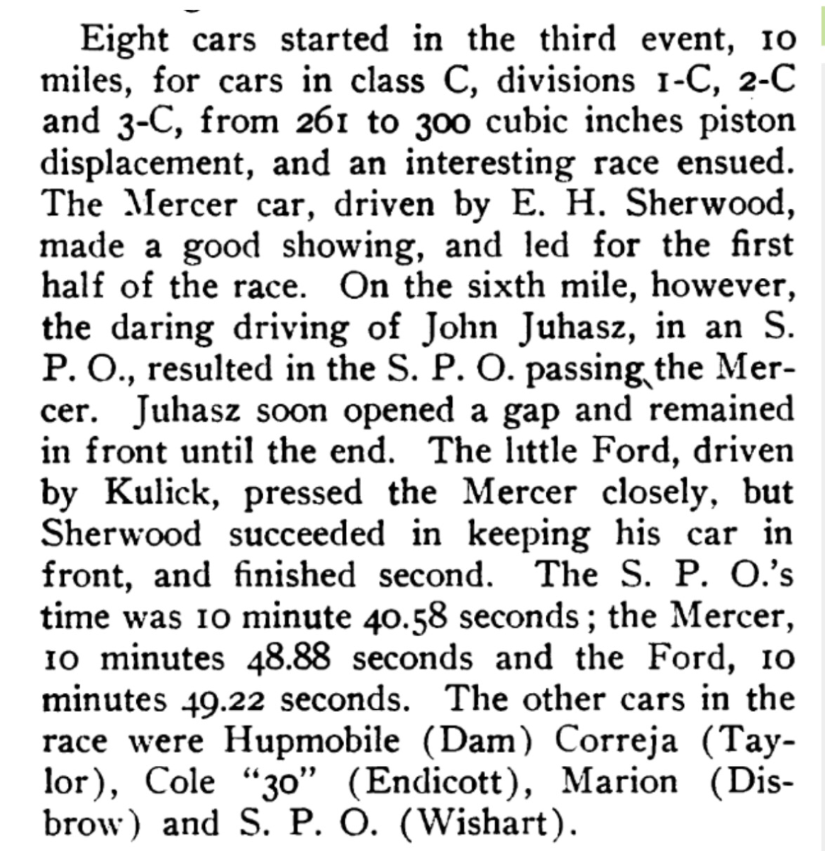 August 1910 racing a Mercer? A rather early Mercer I would think! I know they made their reputation early on.