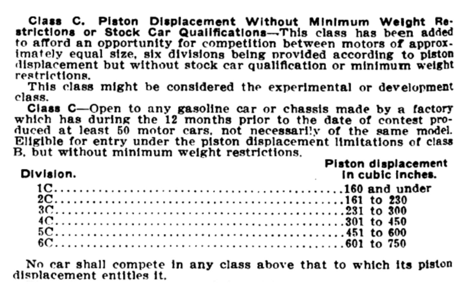 Since both racers shipped from Detroit were of the same displacement, 161 to 230 cubic inch, I am unclear why we need to know which one.
