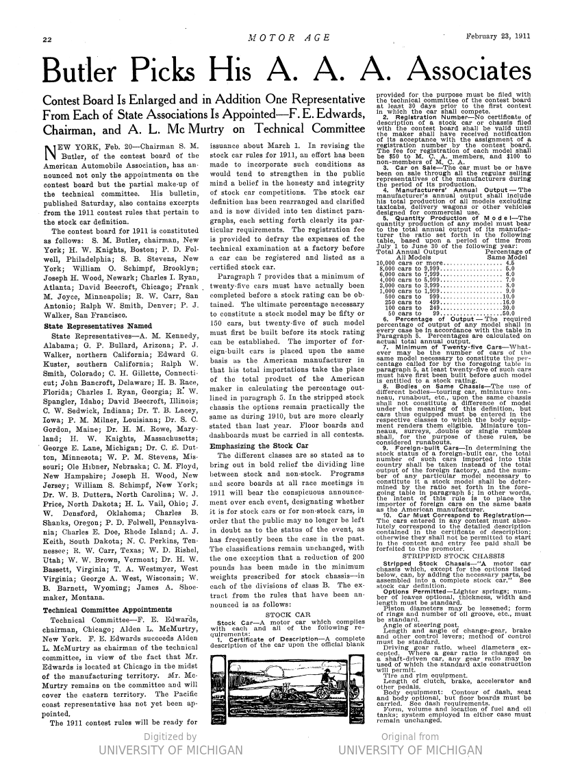 There was only one Ford Motor Company driver, Frank Kulick, that reported to the A.A.A. officials by 20 February 1911, had his car certified (those are the Rules) and was assigned a number. The other driver does not seem to have appeared. One driver, one car to the track.