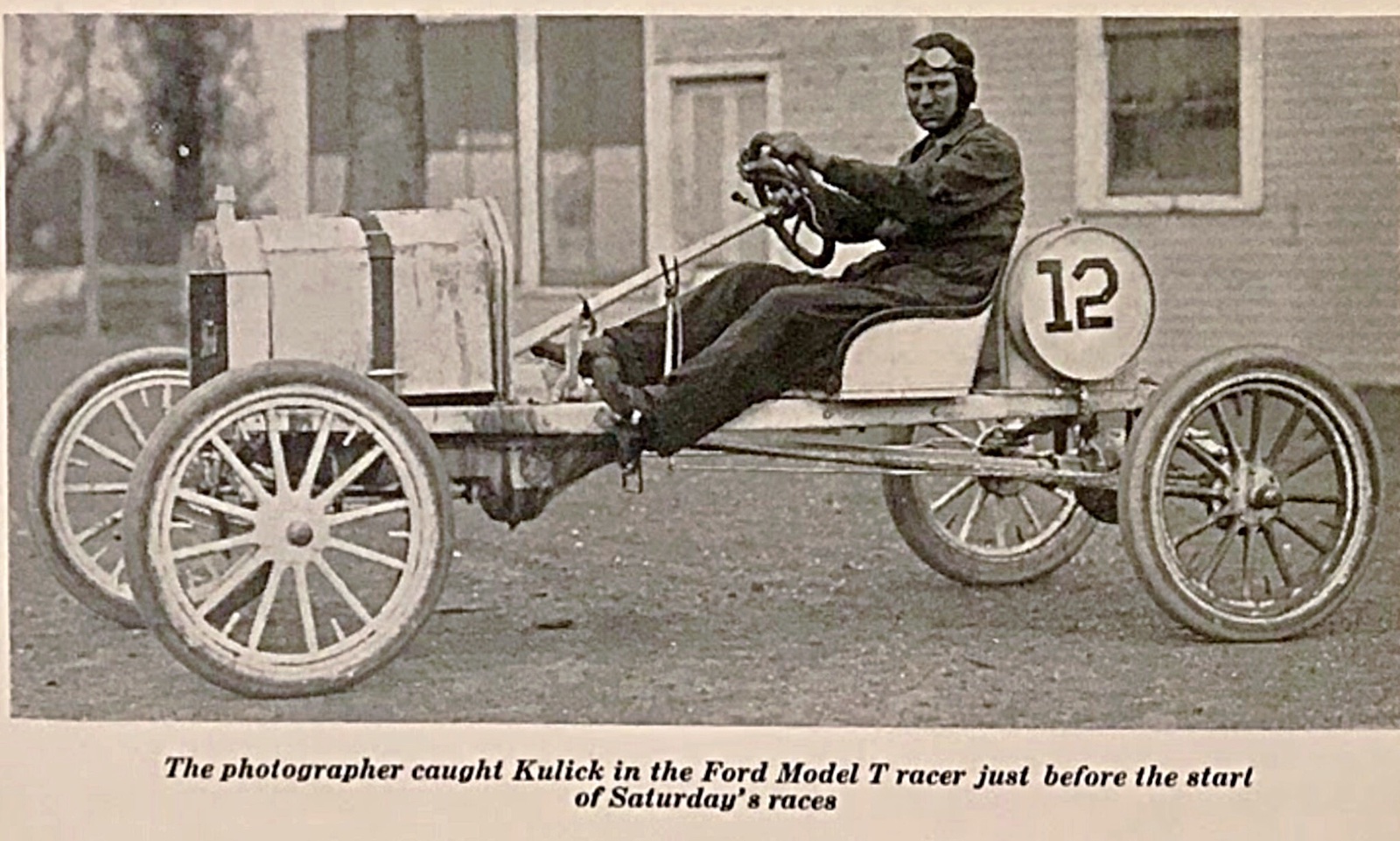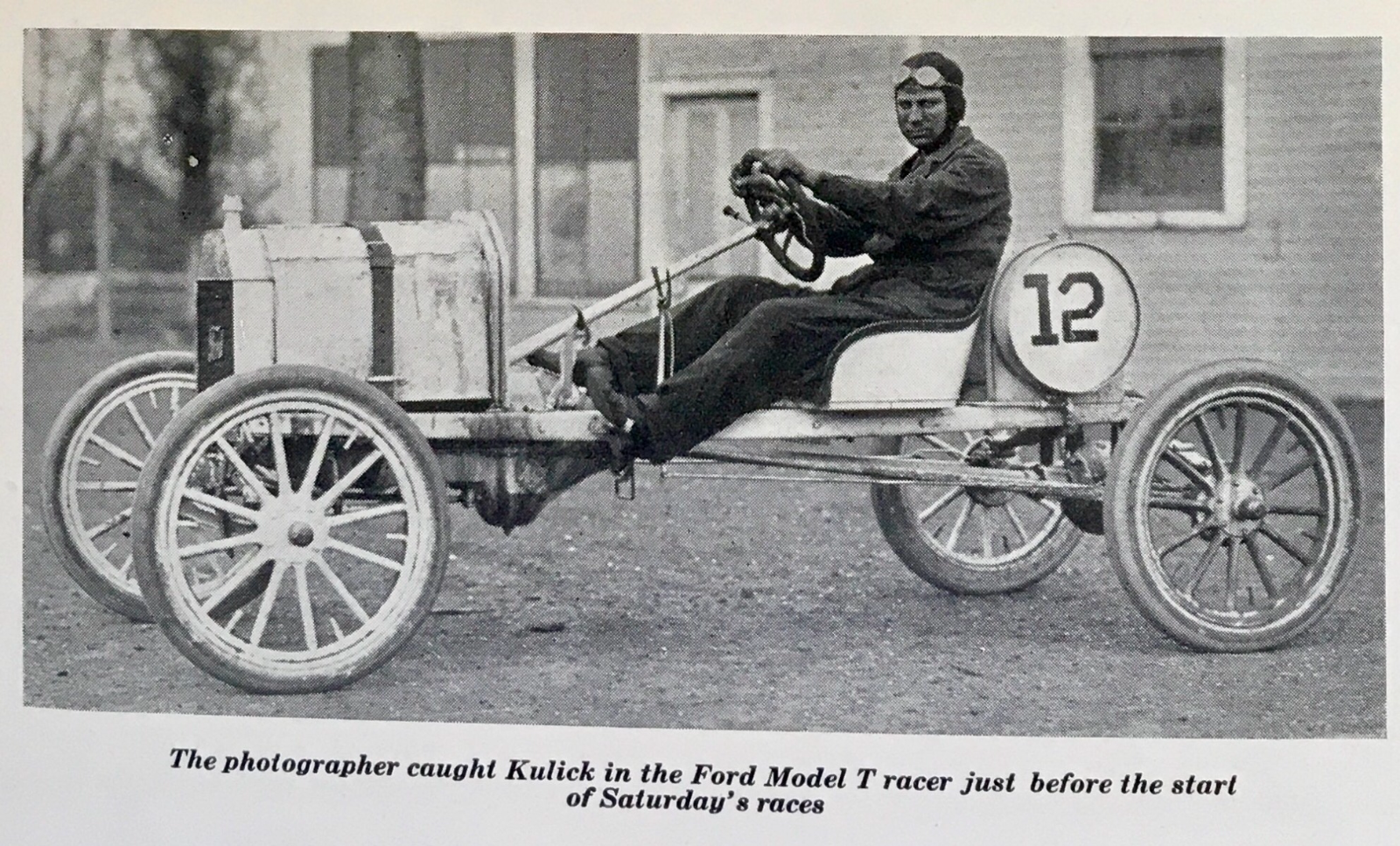 The photograph tells us Kulick was ready for the First race so it is a 161 to 230 cubic inch class Ford Special racer ready to race his class.