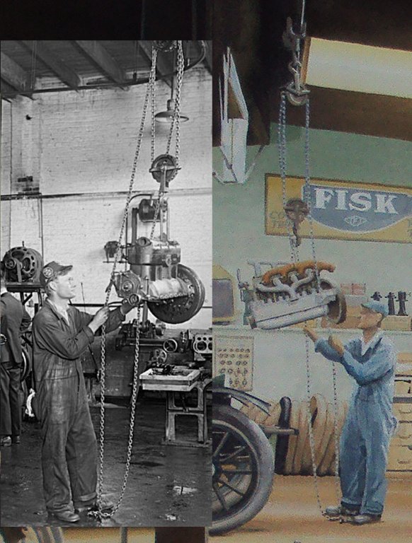 I can’t tell if the mechanic is keeping the engine level by hand or if there is some kind of rigging holding it level. Looks like this paticular shop if fairly clean too!