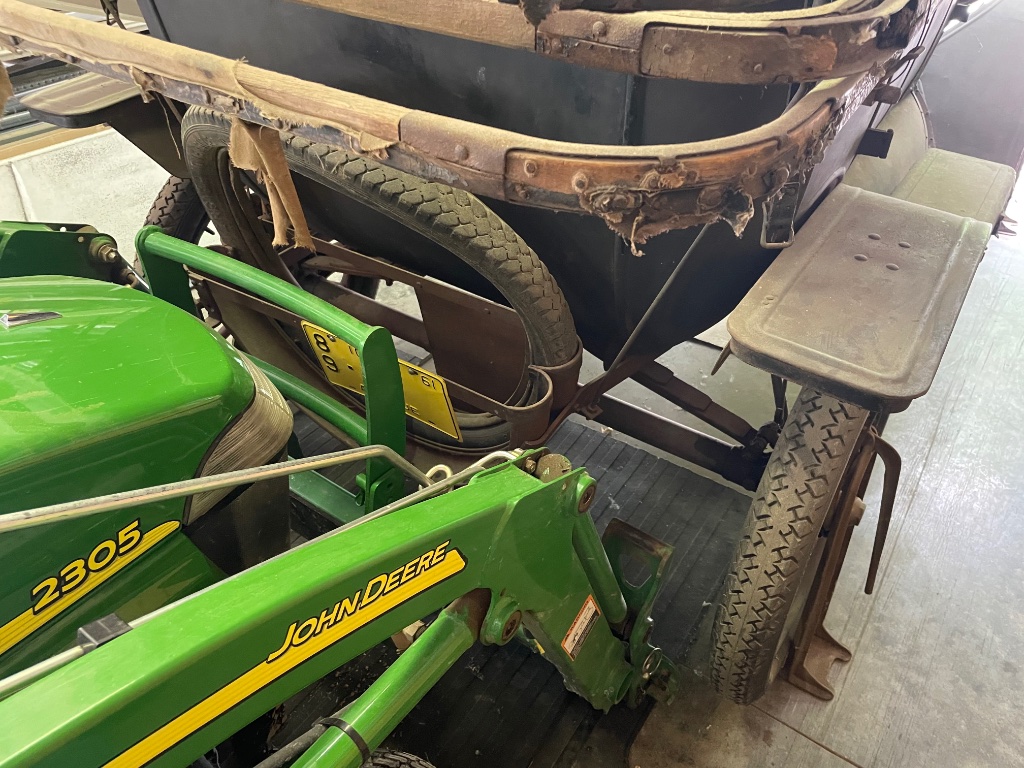 The car is a 1920ish runabout with an interesting large trunk and several after-market accessories.