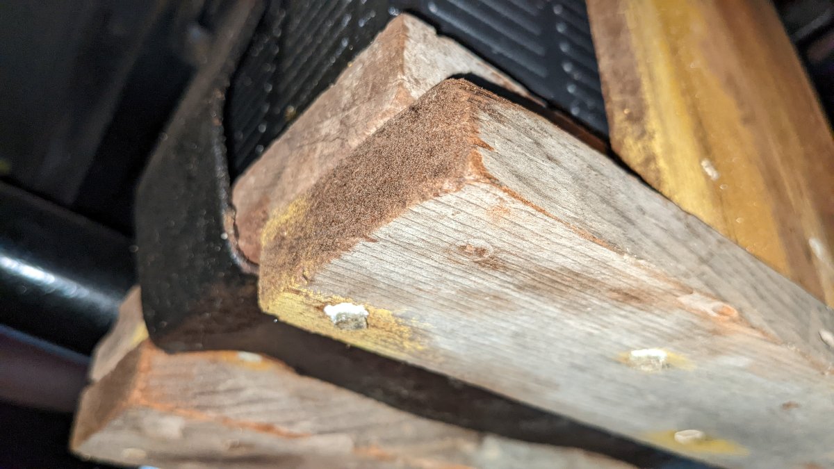 I washed the battery, carrier and wood blocks. I had some EPDM (rubber) membrane material that I stuck to the wood as an insulation. I put a layer on the bottom of the wood too for extra isolation between the battery and carrier. I got some voltage leak. I wrapped that battery in EPDM for another layer.