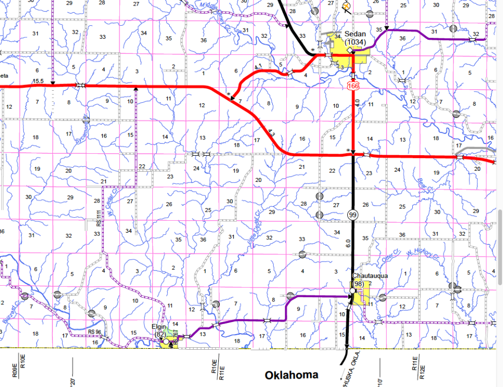 When I head east out of Kansas driving modern I take US 166. But that is a two lane high speed highway with big trucks driving fast, definitely not a Model T road. So when I make that trip in a Model T I take the back roads through Cedar Vale, Hewins, Elgin, etc. on roads the state map or the Rand McNally atlas can't show. There are back roads with little or no traffic nearly all the way to Missouri but I wouldn't now about them without the county maps.