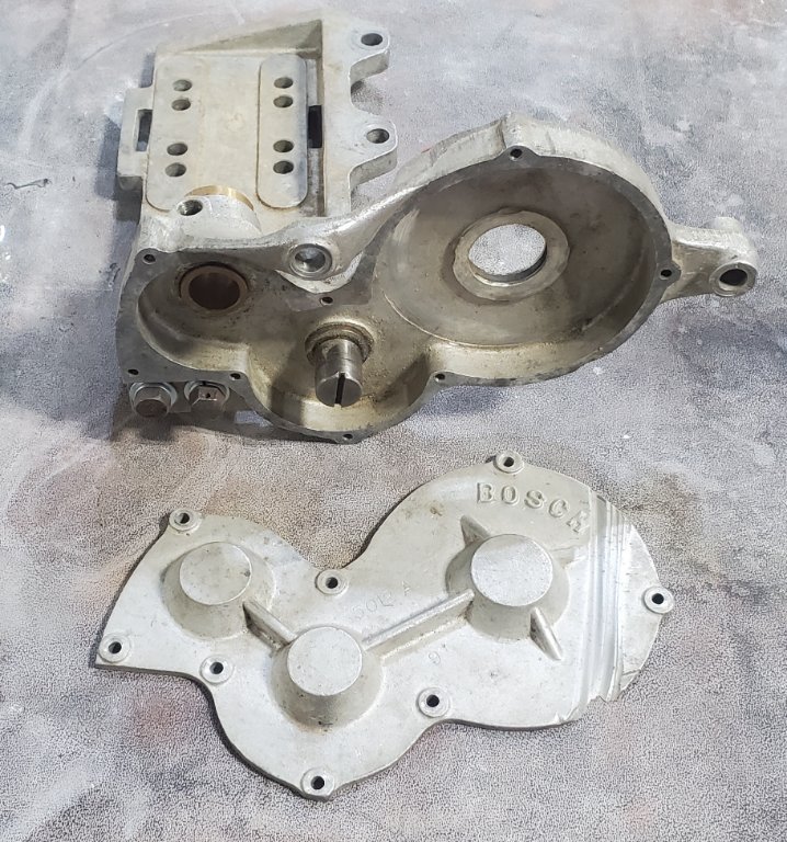 The only Ford produced cover that could work with these mag drives is the late ‘12 - early ‘13 with the short filler spout as Mark stated above. Most of the original mag drives have been ground out in attempt to clear the much more common later design timing cover, but this grinding breaks into the gear case long before clearance is achieved. The timing cover I posted above is a reproduction of an original, clearly identified by the lack of timer register and small filler neck. There is also a casting number on the inside of an original plate; RM-XXXX. The RM casting number prefix is also found on other Bosch accessories