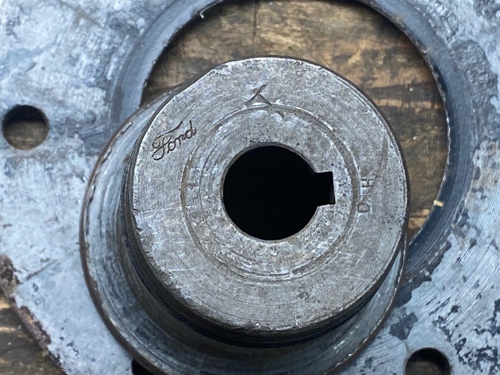 The failed hub has a Ford script, along with a T and a separate D H stamped in the end. The D H looks like my set of stamps, but I don't remember doing it or if I did, what it might mean. This hub has been on the car since 1992 or might have been replaced during a major overhaul around 2009.