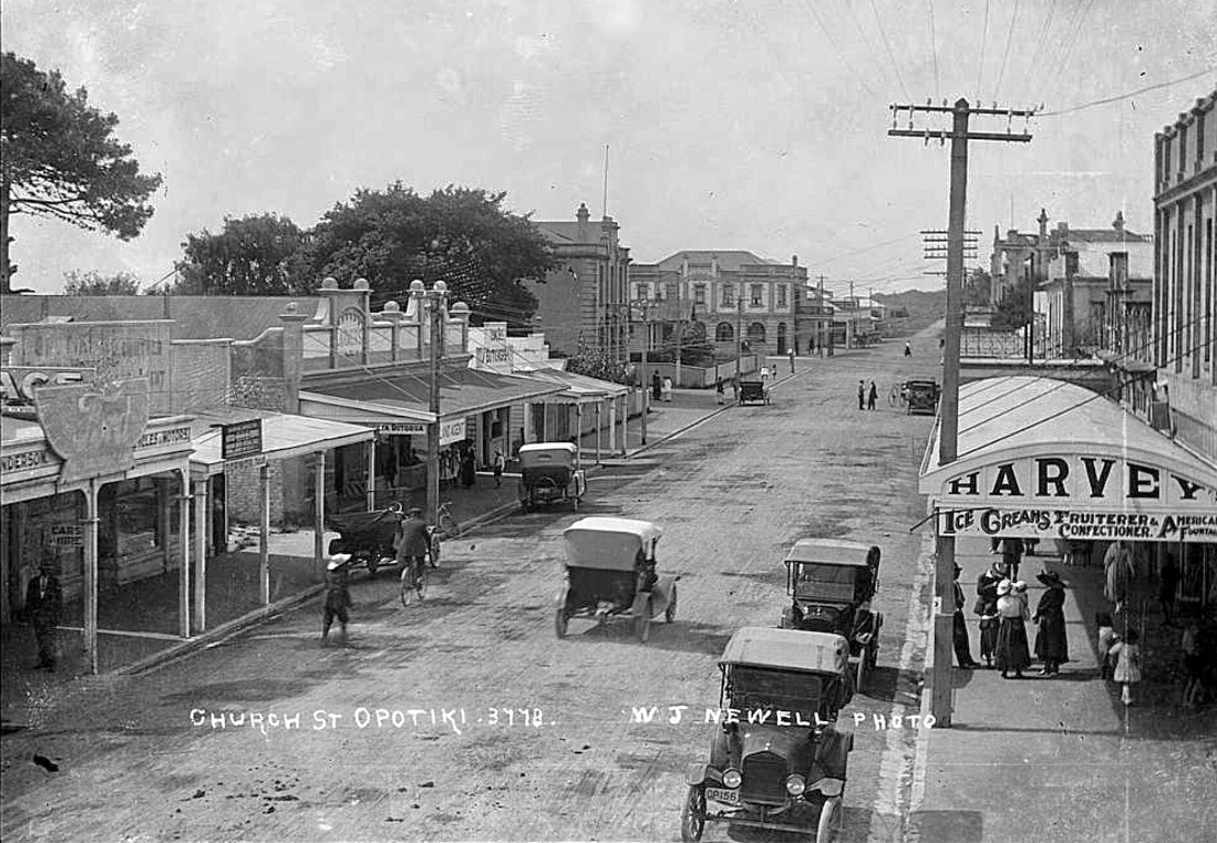 And here is more or less the location of Photo 11 in Opotiki, New Zealand. The building on the left is a match with its distinctive pelmet, but there is no clear evidence as to which building used to be the Ford dealer a couple of doors back.