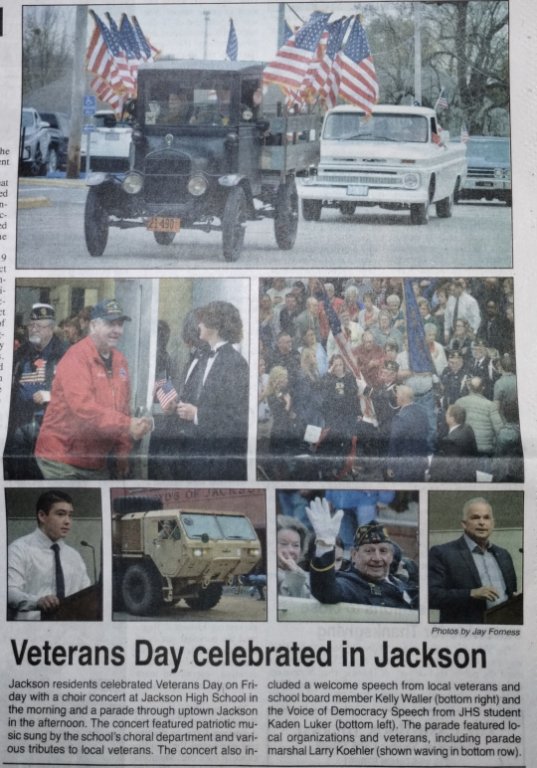 Our Veterans Day parade will be Friday, 11 November...Stand by for pictures...