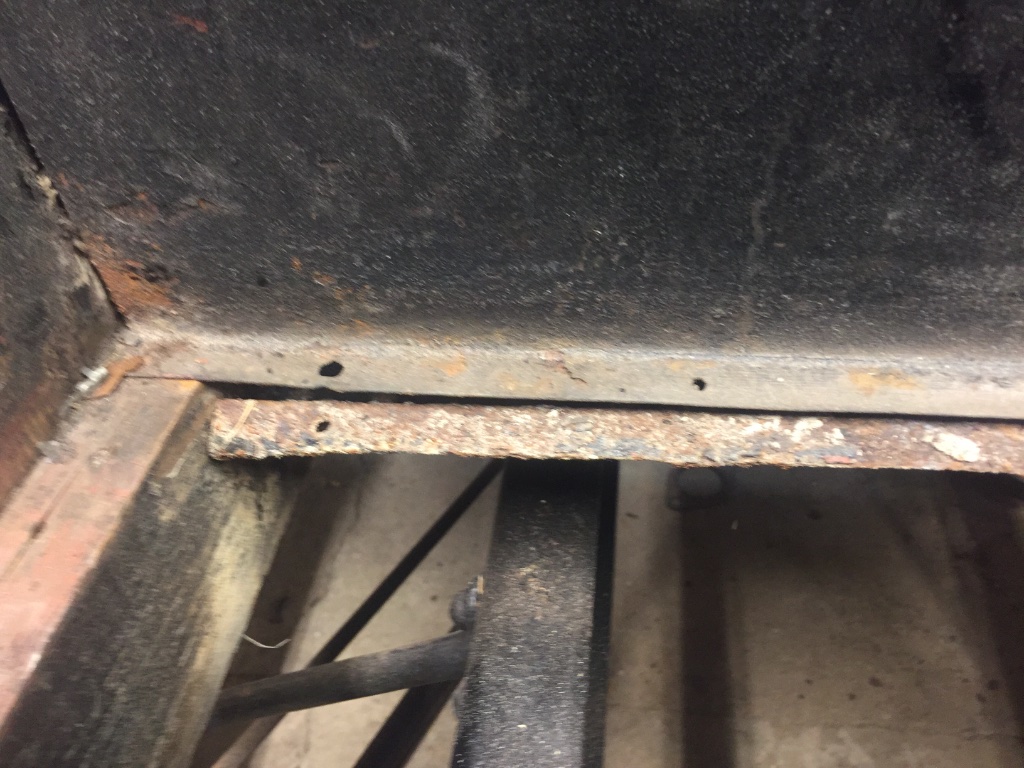the ONLY place I have seen bolts associated with sheet metal is in the joining of the rear sides to the back, and that involves an additional stiffening rib which covers the joint. I do not believe that any kind of bolt would have been involved in a sheet-metal to wood joint.